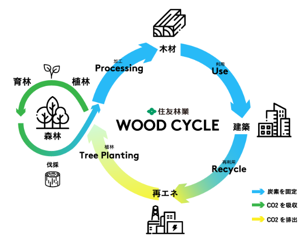 木造建築で使用される樹木の香りには癒しの効果があり、建築資材になっても調湿効果・殺菌効果・リラックス効果など健康増進に寄与します。さらに「軽量」「工期短縮」「節税」等、様々な経済効果が期待でき、地球上で唯一、再生利用可能な資源としても世界で注目されています。