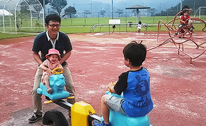 あとは、子供が小さいので公園とかいって遊んだりしてます。子供の教育は社員教育より難しいと思いますね〜いや、ほんと。でも癒されます!