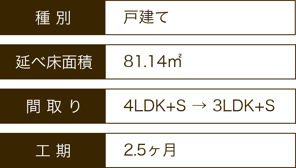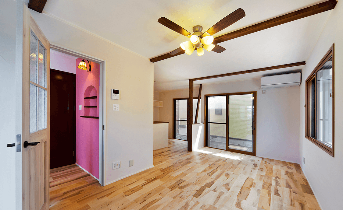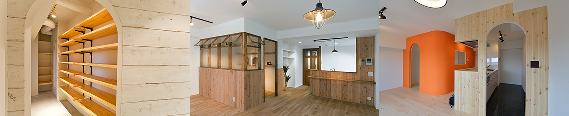 ■無垢材をはじめとした自然素材をふんだんに用い、ローコストに見えない仕掛けを沢山用いたリノベーション。