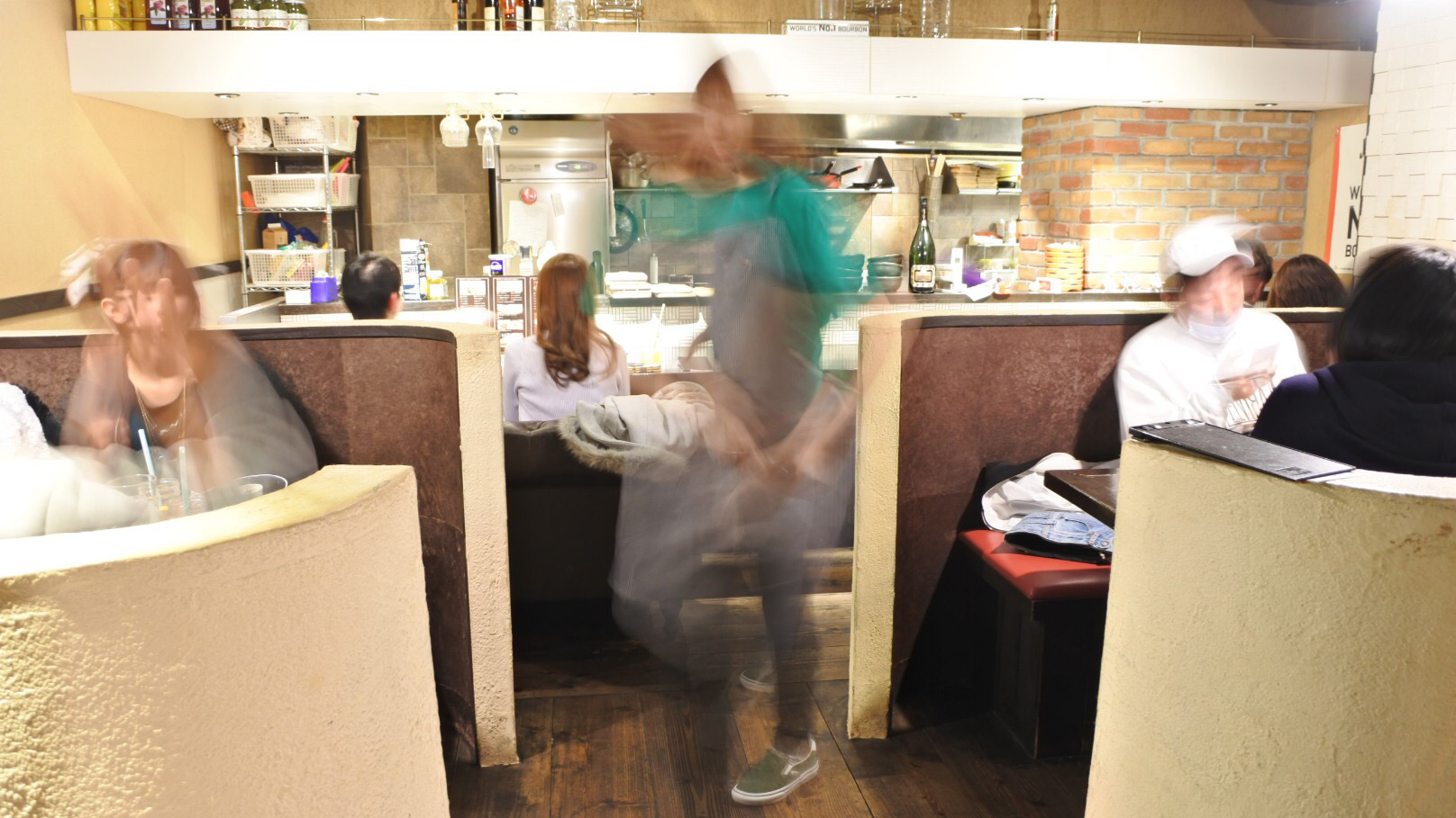 赤色を基調に、モダンな雰囲気を持ったイタリアンメニューが豊富な居酒屋。